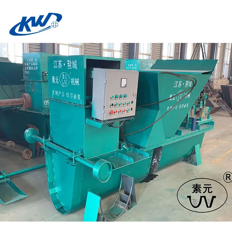 The feeding machine is placed on the canal slope, the frame is connected with the frame of the spreading machine, and there are walking wheels at the bottom of the frame.